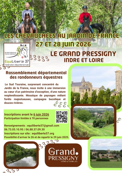 « Tous les Évènements WE 2 jours : les Chevauchées au Jardin de France (37) 27 juin 2026 08:00 – 28 juin 2026 17:00 vers le site de l'organisateur le Grand Pressigny Le Grand Pressigny, 37350 + Google Map Ajouter au calendrier Google Agenda iCalendar Outlook 365 Outlook Live